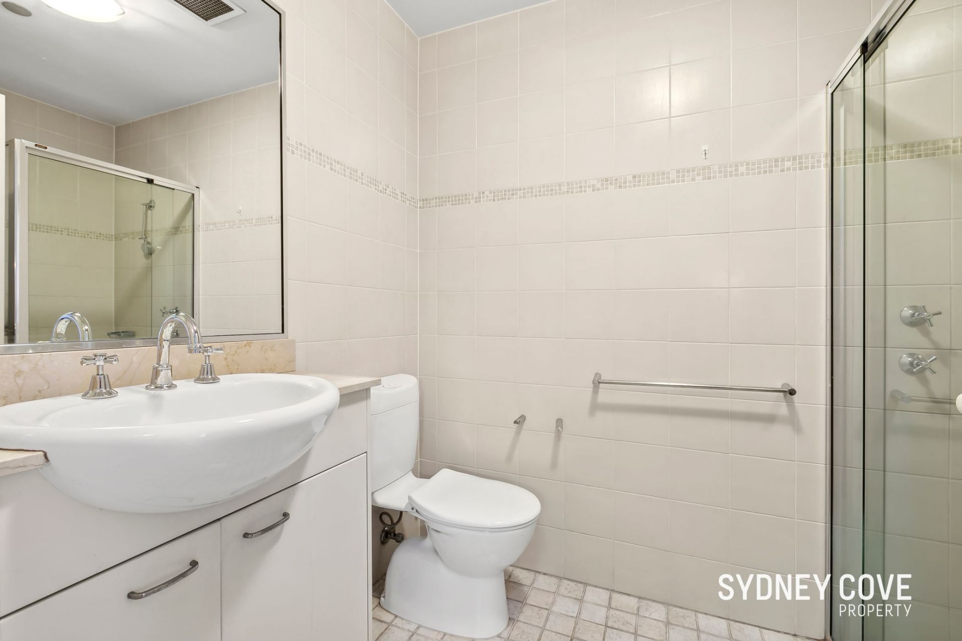 • Fully tiled bathroom with a dryer