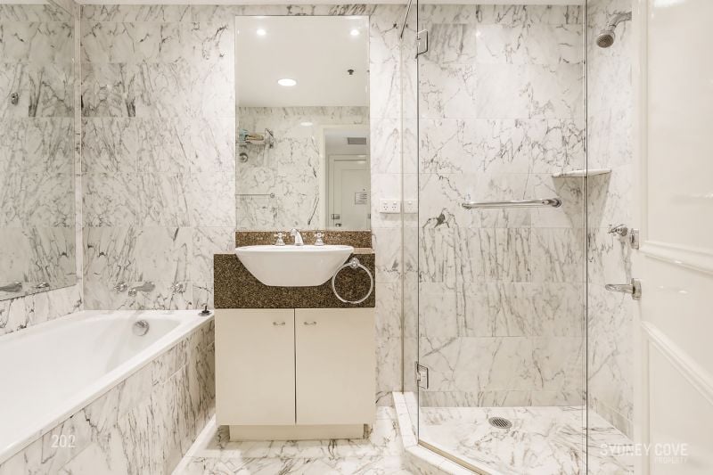 - Full marble bathroom with bath and shower