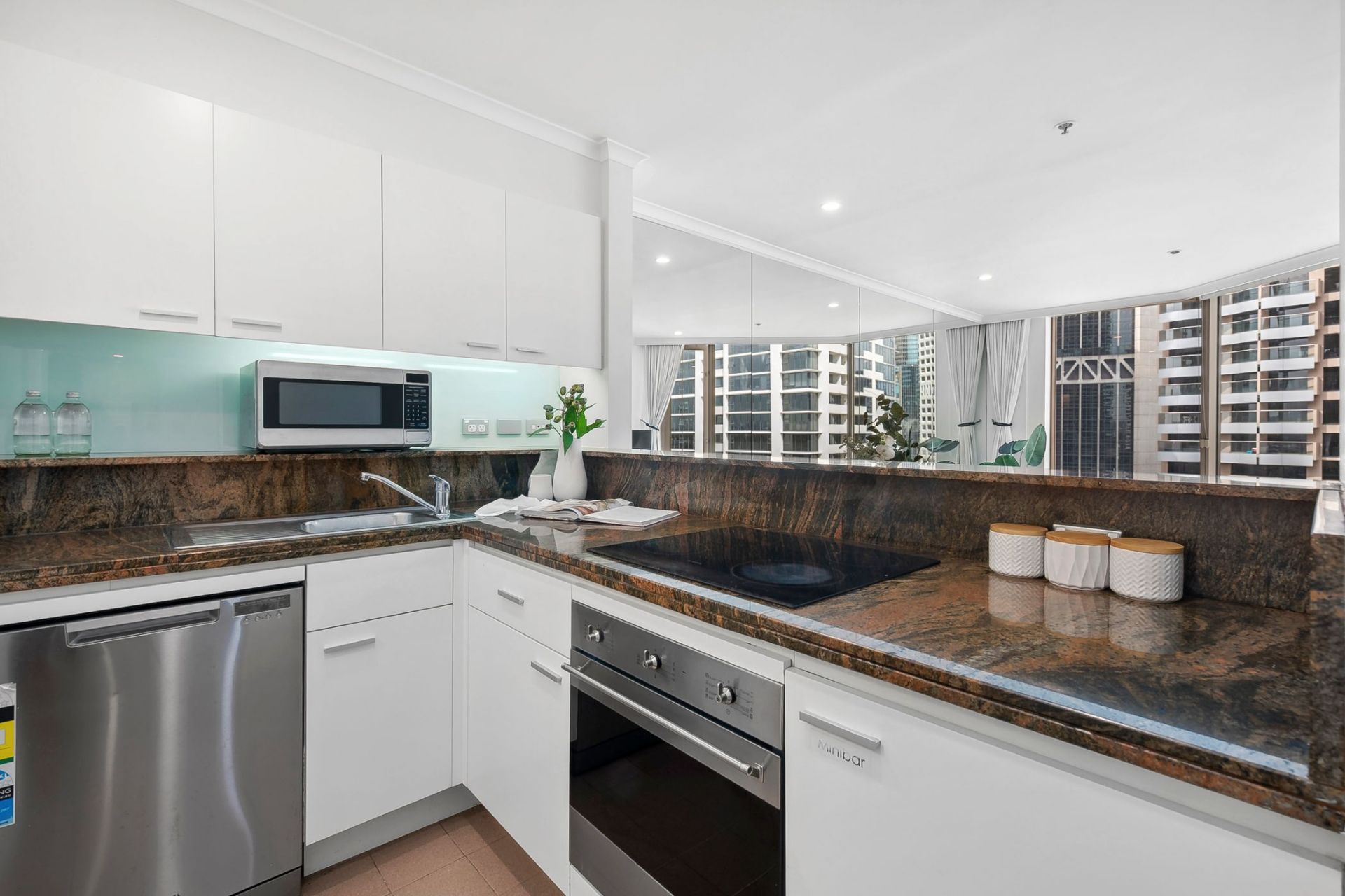 This fabulous one bed apartment accommodates a complete designer furniture package, grand bathroom, internal laundry and high quality kitchen bench tops. Quay West offers a flexible investment, as an owner you can either lease your apartment back to the hotel scheme, put in a long term private tenant or live in the apartment yourself. Convenience living is complete with easy access to the best shops, restaurants and Sydney's historic and iconic sites. Only a short walk to Barangaroo, Circular Quay, Pitt Street Mall and The Rocks tourist precinct.