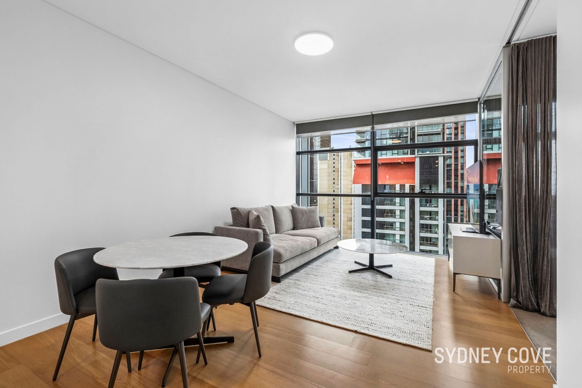 - Spacious combined living and dining area with timber flooring