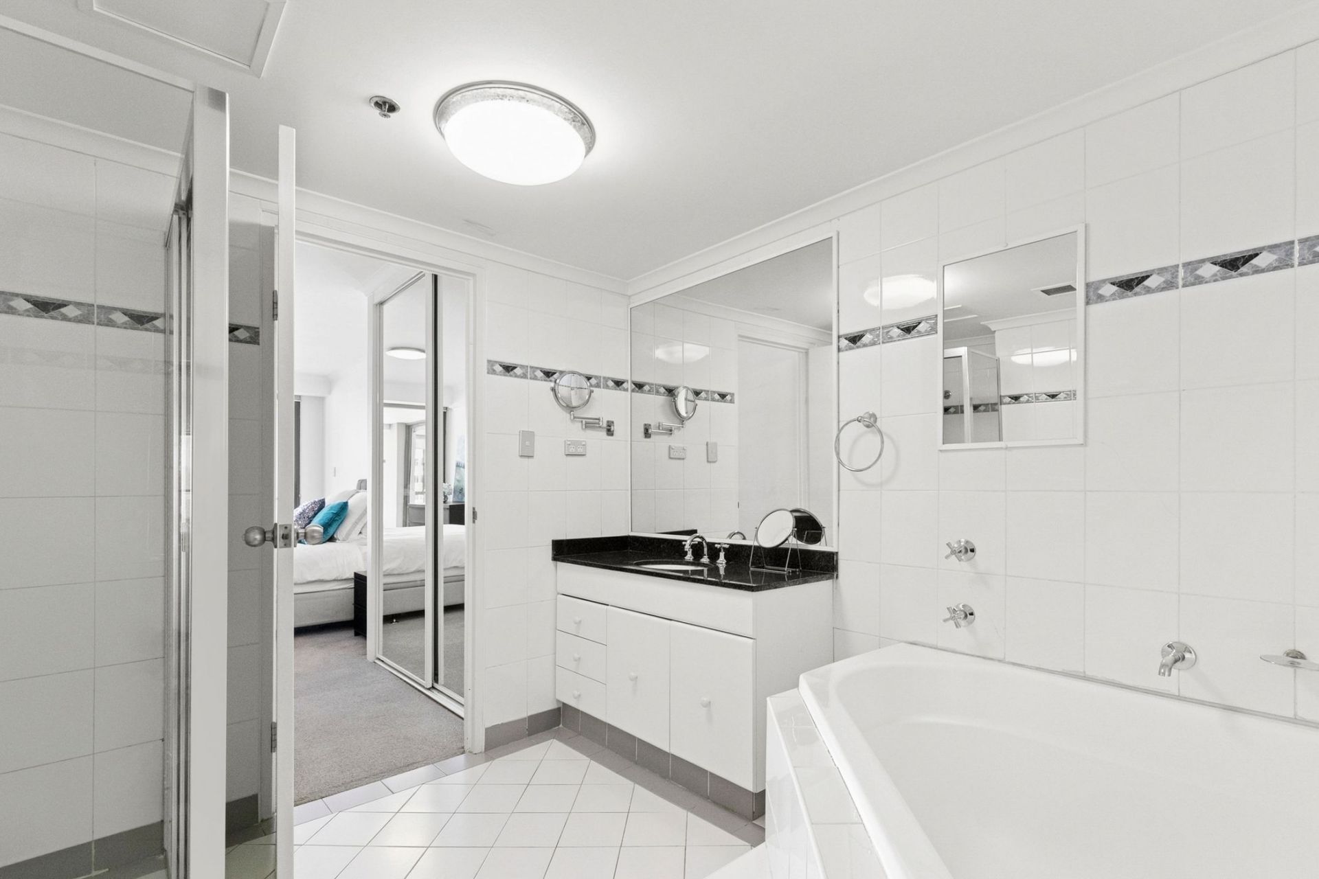 - Main bathroom with separate shower and bathtub; ensuite featuring a large spa bath